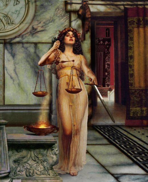 흔히들 '법의 정신'을 나타낼 때, 정의의 여신 '디케'를 호명해. 그리스 신화의 무수한 여신들이 손에 꽃을 들고 있다면 디케는 검을 든 여신이야. 한 손엔 옳고 그름의 무게를 재는 저울과 또 한 손엔 그 어떤 외압에도 굴하지 않고, 그 누구라도 심판하는, 법의 권위를 상징하는 검 한 자루를 들고 있어. 또 선입견이나 편견에 흔들리지 않는 공정한 판결을 내리라는 의미에서 두 눈을 가리고 있지. 그녀는 인간의 계절과 시간, 운명을 관장하는 네 자매 중 하나로 디케의 로마식 표기는 유스티치아(Justitia)이고, 정의라는 영어 단어인 Justice의 어원이기도 해.