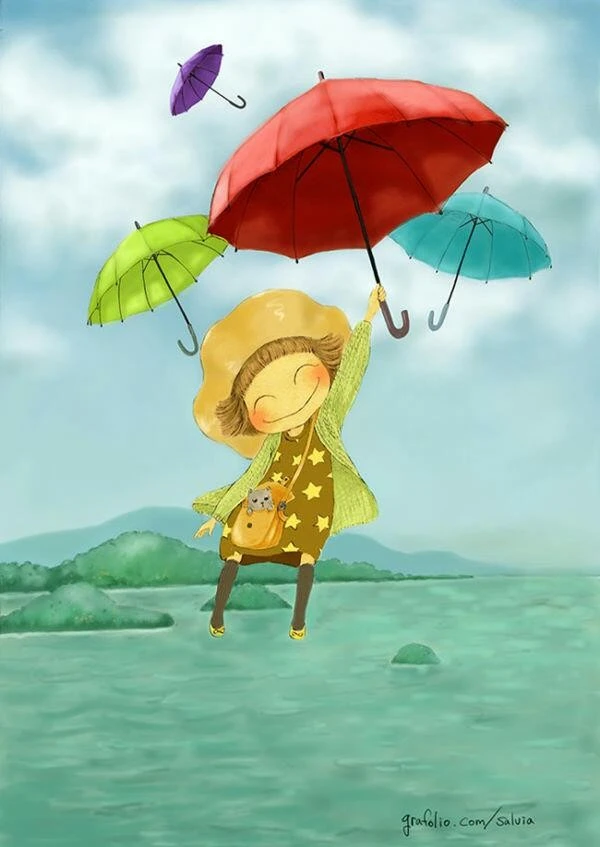 저는 우산을 들고 사랑하는 사람을 기다리기 위해 나갔어요.