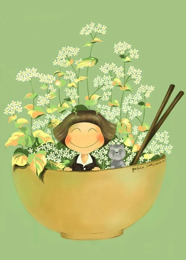메밀꽃을 보며 메밀국수를 먹었어요.