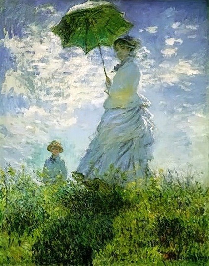이제 까미유에 대한 절절한 사랑 고백, <산책, 1875>도 볼까? 느루야, 이 작품 속 모델은 역시 까미유와 아들 쟝이란다. 초록 우산을 들고 공기 중에 둥실 떠 있는 듯한 까미유의 모습은 눈부시구나! 그림을 세세히 살필 사이 없이, 그녀가 우리의 시야에 훅 떠 오는 느낌이지.