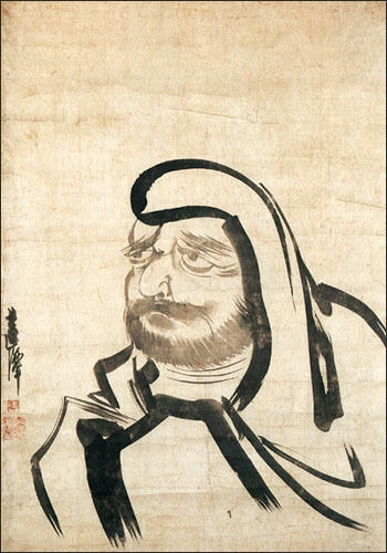 김명국이 일필휘지로 그린 달마는 5세기 말의 인도 선승입니다 중국 남북조 시대, 양나라 무제는 많은 절을 짓고 불탑을 쌓고 승려를 양성하는 불교 중흥 정책을 폅니다. 마침 달마가 인도에서 왔다는 소식을 듣고 궁궐로 초대하고 후한 대접을 한 뒤 내 공덕이 얼마나 큰가를 묻습니다. 달마는 공덕이 없다고 한마디로 잘라 대답합니다. 칭송을 바라는 공덕은 이미 공덕이 아니라는 뜻을 전한 거지요. 자신을 빗대어 폄하했다고 느낀 무제는 그를 괘씸히 여겨 은밀히 죽인 후 산에 묻어버립니다.