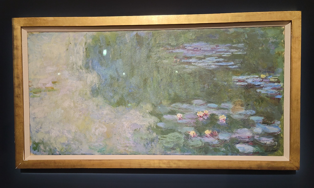 세 번째 그림은 모네의 <수련이 있는 연못>입니다. '모네'하면 '수련'이 바로 떠오르는데 이 작품도 모네가 지베르니에 있었던 후기 작품입니다. 이 작품과 유사한 그림이 오랑주리 미술관에 있다고 합니다. 영화 <미드나잇 인 파리>를 보시면 오랑주리 미술관이 나옵니다. 모네의 수련 연작이 전시관을 빙 둘러 있지요. 문화의 힘이 얼마나 센지, 벨 에포크 시대의 파리가 얼마나 흥분되고 낭만적이었는지 알 수 있으실 거예요.