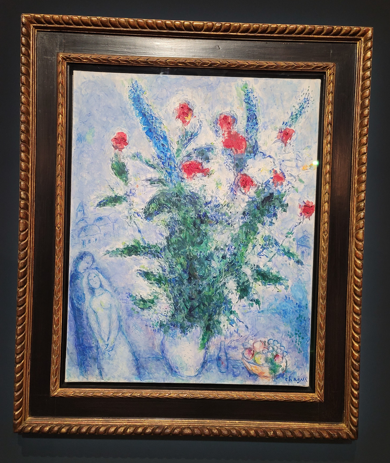 두번째로 소개할 그림은 마르크 샤갈의 <붉은 꽃다발과 연인들, 1977~78>입니다. 여기에선 <결혼 꽃다발>이라는 화제로 전시되어 있었어요.