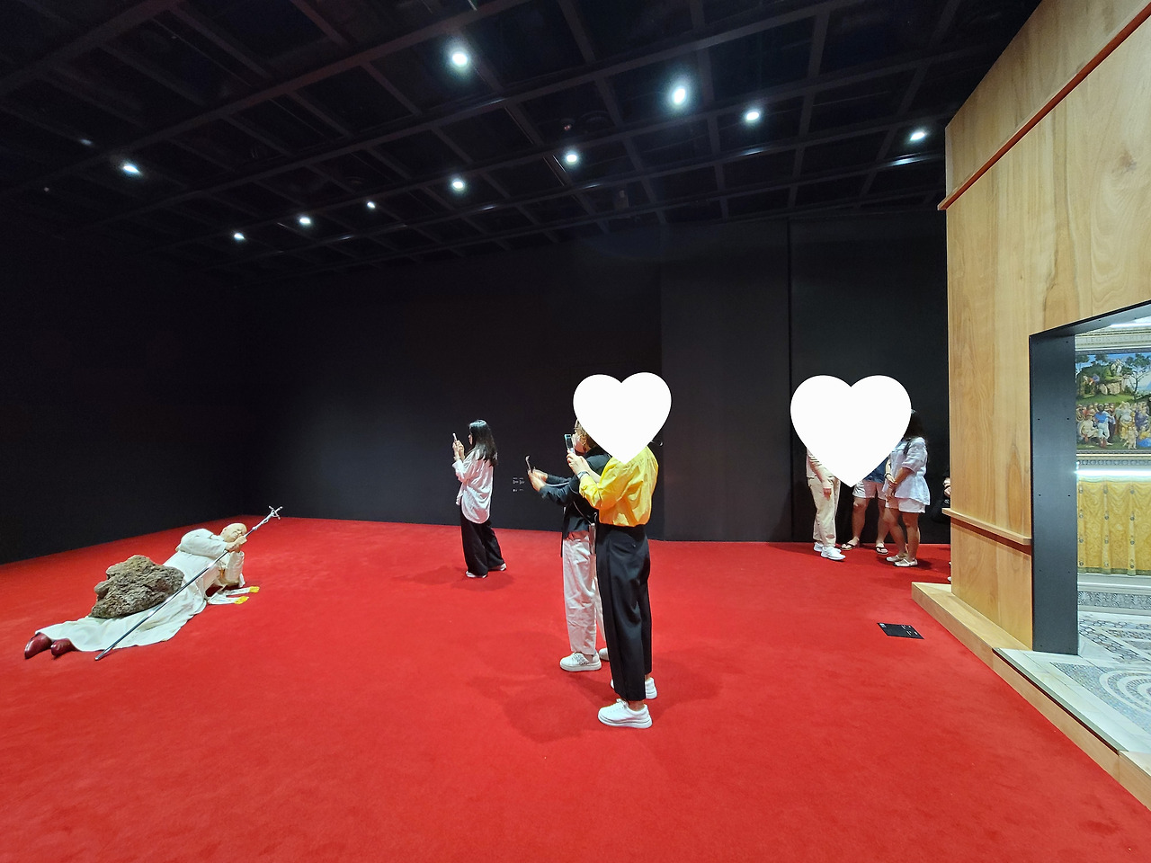 한참 고개를 숙이고 있다가 그 연인들과 함께 임시 합판으로 설치된 '미니어처 시스티나 경당'에 들어갔단다. 느루야, 엄마 어제 <마우리치오 카텔란 전시> 보러 갔었어. 2019년 아트 바젤에서 마우리치오 카텔란(Maurizio Charlie, 1960~ )의 바나나, <코미디언>이 던진 이슈가 워낙 핫해서인지 예매가 하늘의 별따기더라. 네 번의 도전 끝에 겨우 성공했지 뭐야. 궁금한 마음에 걸음도 급했단다. 너 전시 관람 팁 중 하나가 순서를 거꾸로 보는 거라는 거 아니? 원래 입구가 밀리기 마련이거든. 엄만 노련하게 2층으로 올라갔어. 그리고 그 어린 연인들과 이 작품을 보았구나.