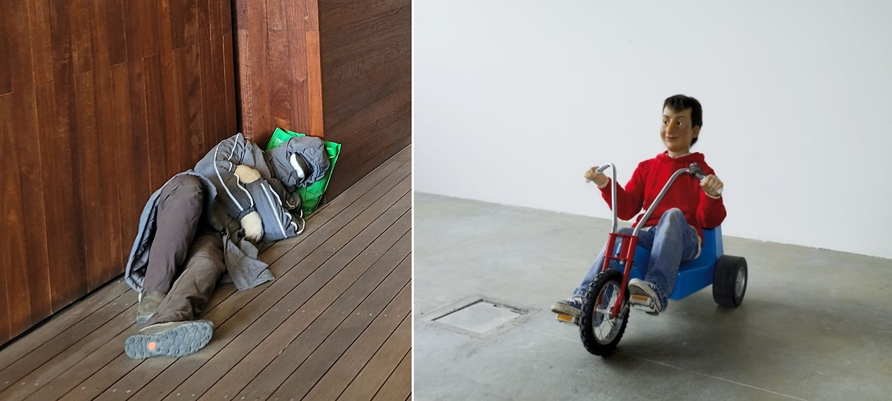 마우리치오 카텔란 아래 <우리, 2010> / 위 <그것, 2023>