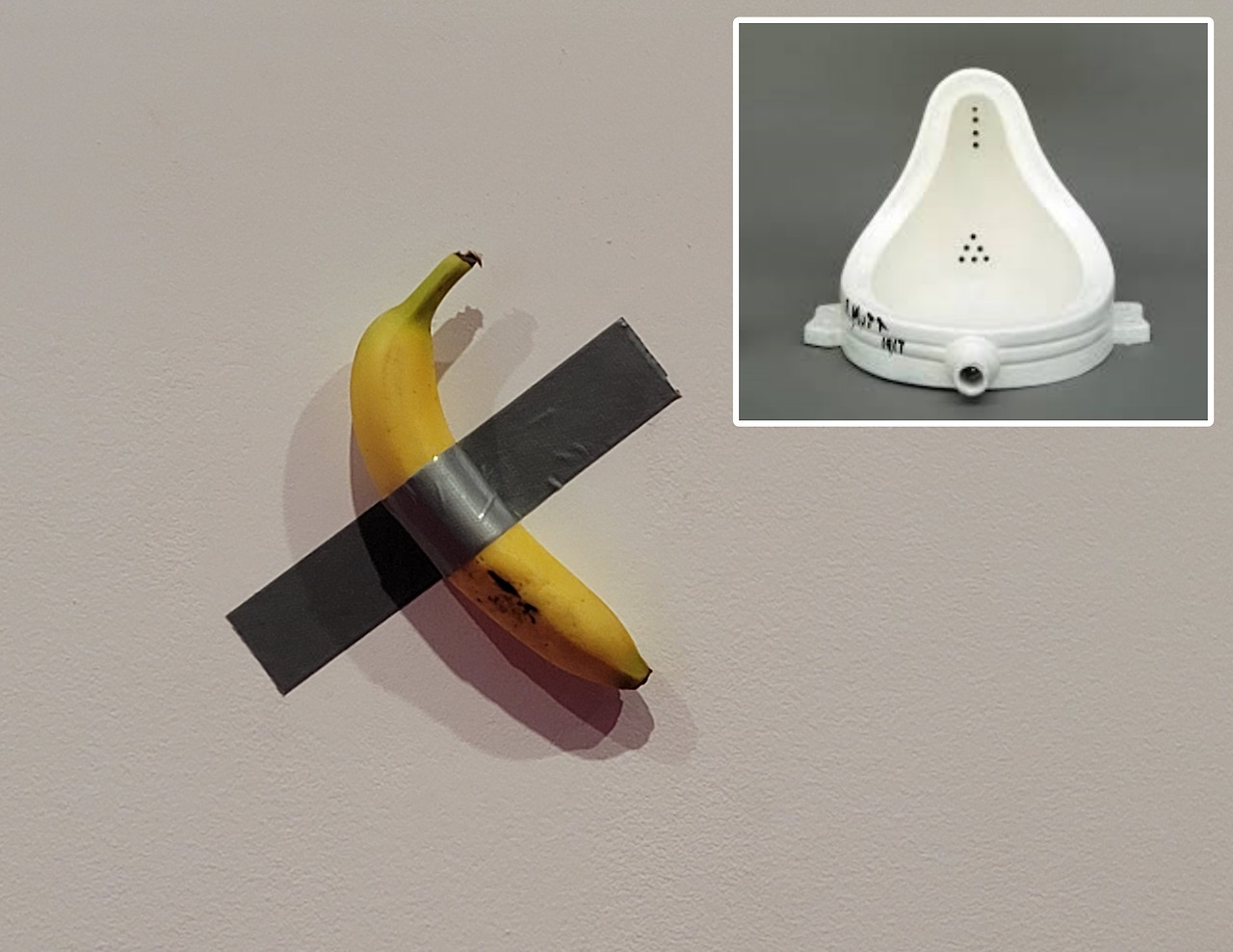마우리치오 카텔란 <코미디언, 2019> / 마르셸 뒤샹 <샘, 1917>