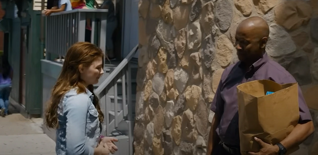 덴젤 워싱턴은 그 특유의 찌르는 눈으로 소녀를 바라봅니다.