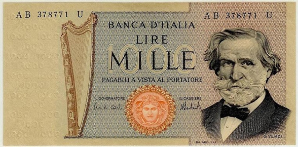 <주세페 베르디가 모델인 이탈리아 화폐, 1969년 발행>