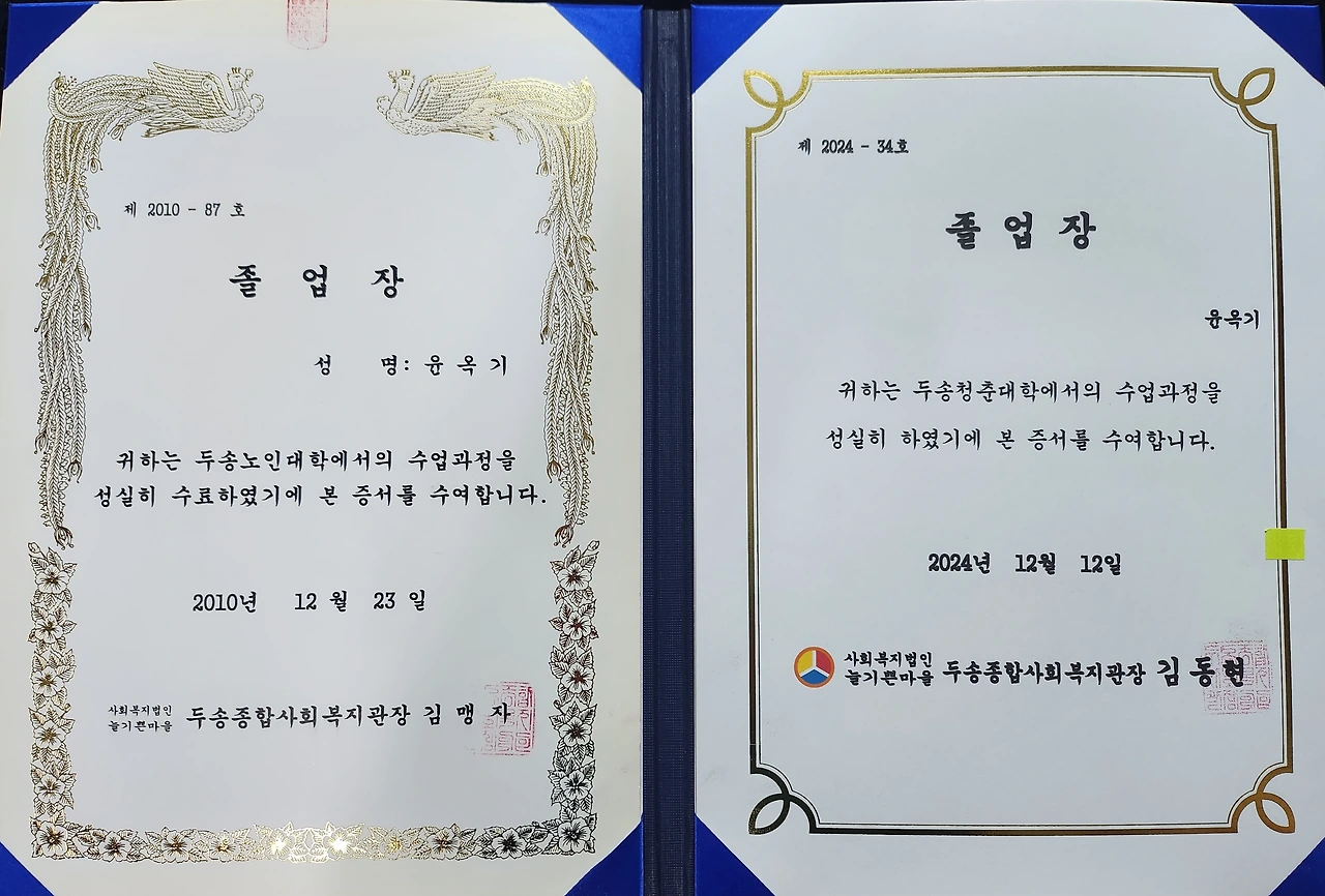 2020년 코로나19로 10년을 한결같이 다니던 노인대학이 문을 닫았다. 졸업장이 10장이나 되는데 갑자기 갈 곳이 없어지니 마음이 참 허전했다. 복지관에서 매일 점심거리를 나눠주었지만, 사람 온기가 그리운 적적함은 쉽게 달래 지지 않았다.