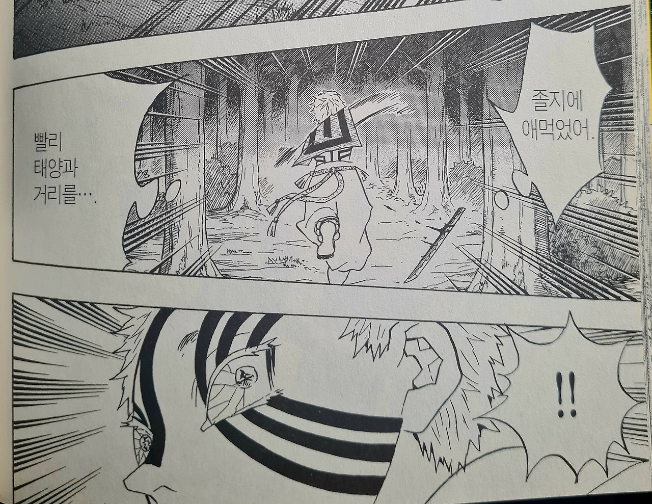 "도망가지 마, 이 비겁자야! 우리 귀살대는 언제나 너희에게 유리한 밤의 어둠 속에서 싸우고 있어! 살아있는 인간이! 상처도 쉽게 아물지 않는데!"