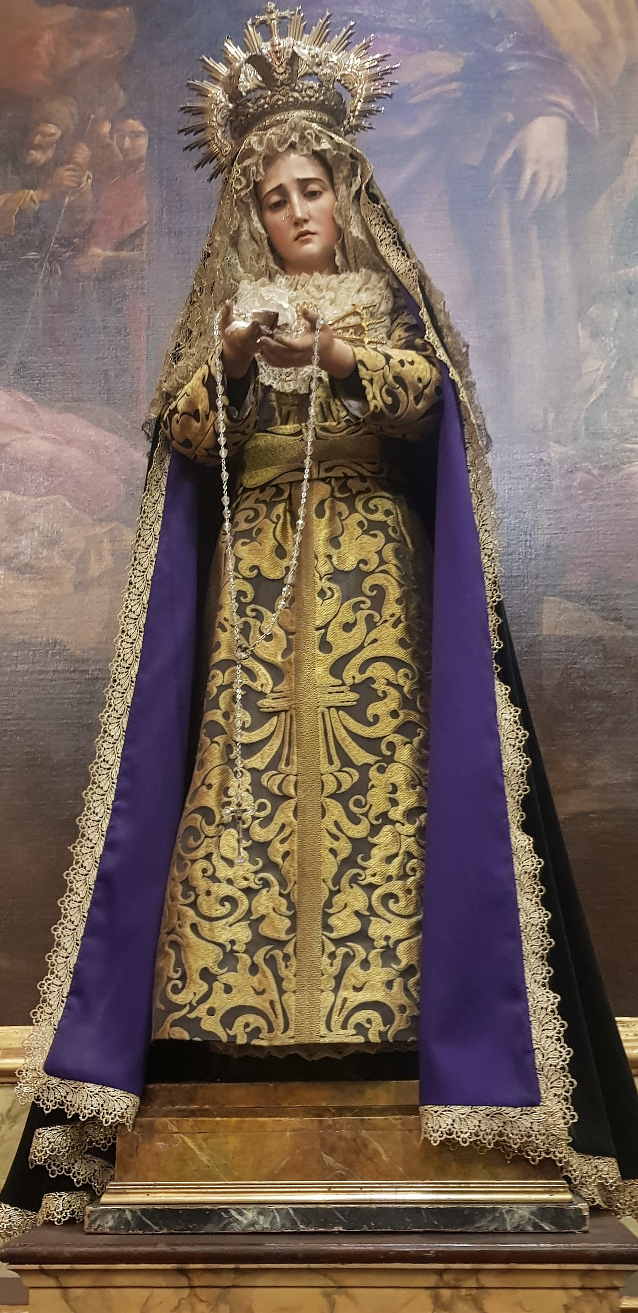 이 성당에서는 그림이 단연 주인공이지만 흥미로운 조각품도 볼 수 있다. 벽 면의 그림들 사이에는 아치형 재단이 있고 거기에는 조각으로 된 성모와 성인들이 모셔져 있다. 정면을 보고 오른쪽에 있는 세 개의 조각은 스페인의 미켈란젤로라고 불렸던 알론소 카노(Alonso Cano)의 작품이다. 세 개의 조각 중 ‘외로운 자들의 성모’라고 불리는 조각상은 눈물을 흘리는 성모의 표정이 너무나 사실적이라 바라보기만 해도 마음이 뭉클해진다. 사람들에게 둘러싸여 있을 때는 성모의 존재를 보지 못할 것이다. 하지만 모두가 떠나고 처절하게 외로워질 때. 그때서야 외로운 나를 불쌍히 여기는 성모의 눈물을 보게 될 것이다.