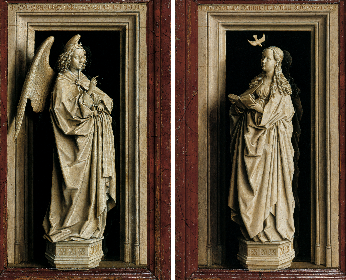 < 얀 반 에이크의 수태고지. 그림으로 조각을 표현한 대표적인 그리자이유 작품이다. >