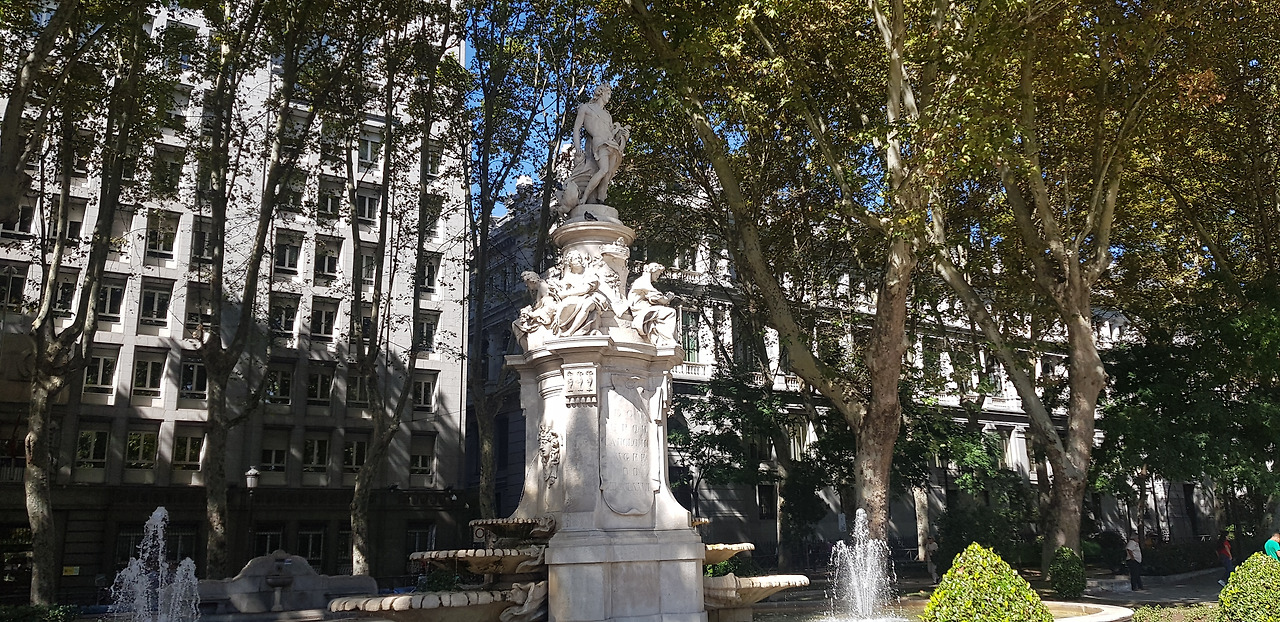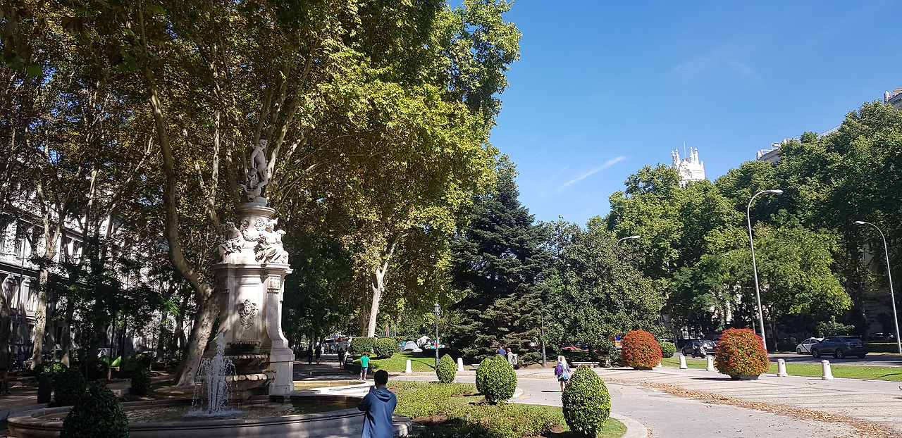 까익사 포럼의 건너편은 왕립 식물원이다. 넓은 공간에 다채로운 식물들이 어우러져 있는 식물원도 좋지만 개인적으로는 파세오 델 프라도 대로를 따라 뻗어있는 산책로를 더 좋아한다. 파세오 델 프라도를 한국어로 옮겨보면 ‘초원의 산책로’ 쯤 된다. 이름 그대로 산책로는 푸르름으로 뒤덮여 있다. 이 거리는 언제 걸어도 좋지만 특히 여름의 녹음이나 가을의 단풍 사이에서 걸을 때면 매 발걸음이 즐겁다. 까익사 포럼을 보았으면 신호등을 건너 반대편 인도를 따라 걸어보자. 지금 우리가 북쪽으로 걸어가고 있는 것이니 도로의 오른쪽 인도가 되겠다.
