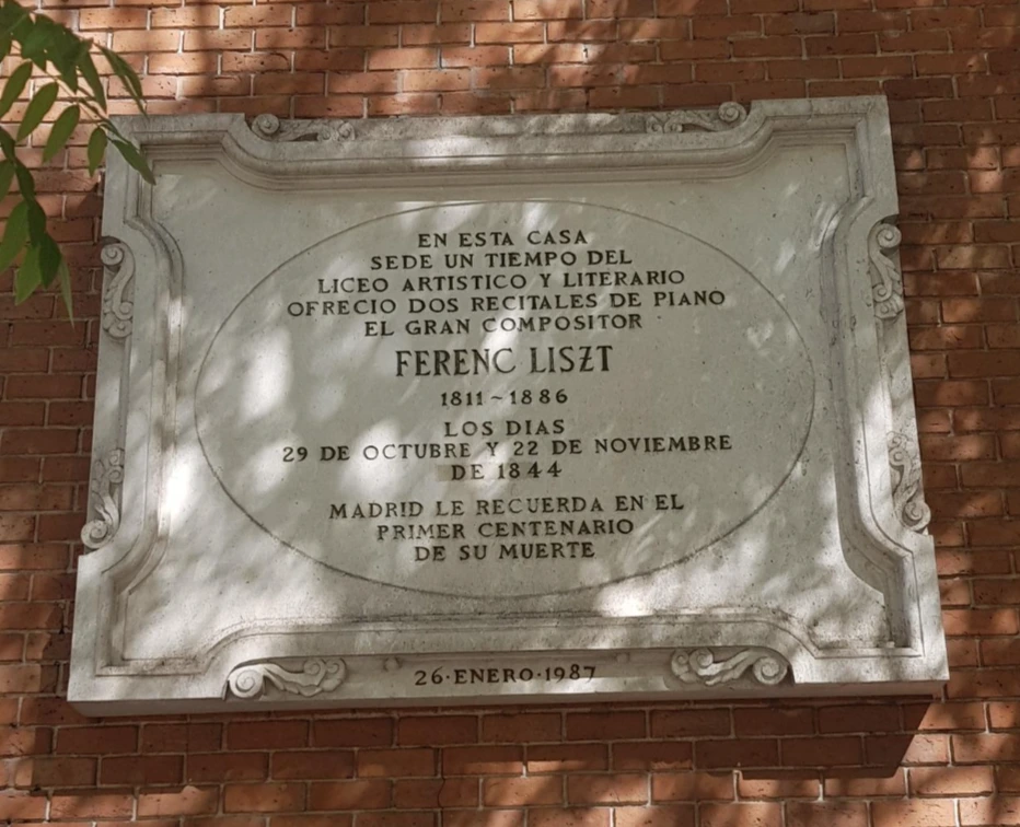 < 1844년 리스트의 마드리드 공연 기념문 >