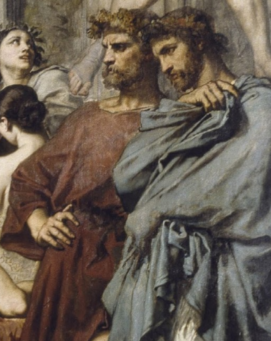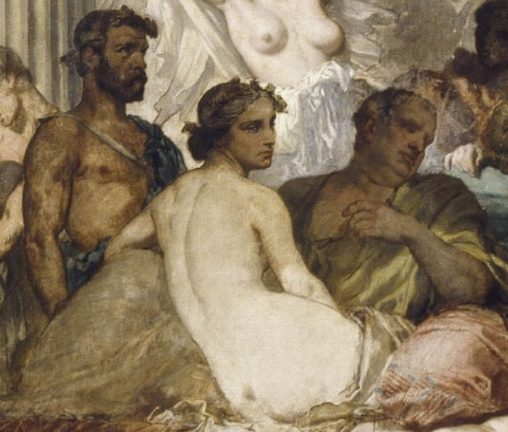 한 편 이 그림의 좌우에는 로마 말기의 처연함을 상기시켜주는 인물군이 있다. 우측에는 두 명의 남자가 매서운 - 혹은 한심하다는 - 눈빛으로 이 장면을 지켜보고 있다. 이 남자들은 머지않아 로마를 무너뜨릴 게르만족 청년들이다. 좌측에는 앵그르의 오달리스크 같은 포즈를 취하고 있는 여성과 그녀를 둘러싼 두 명의 남자가 있다. 이들은 맑은 정신을 유지하고 있는 로마인으로 쾌락에 찌든 조국의 모습을 안타까운 심정으로 바라보고 있다. 이들은 모두 직감하고 있다. 그토록 위대했던 로마가 황혼기에 접어들었다는 것을.