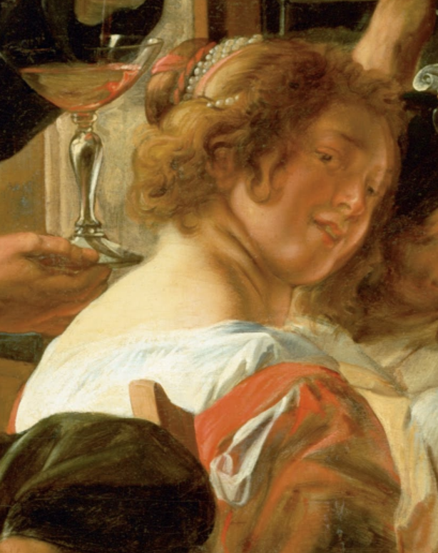여러 인물들의 모습이 제 각각 흥미롭지만 가장 눈에 띄는 인물은 우리를 향해 살짝 돌아보고 있는 여인이다. 은은하지만 매혹적인 눈빛과 웃음으로 우리를 이 즐거운 술자리에 초대하는 듯하다. “뭘 그리 보고만 있어요? 어서 빨리 여기 와서 한 잔 해요.” 이 여인의 시선은 우리를 고전회화 앞에 선 ‘감상자’가 아니라 흥겨운 축제의 ‘참석자’로 만든다.이 그림은 놀랍도록 현대적인 작품이기도 하다. 종교나 신화, 역사가 아닌 서민의 삶을 묘사한 주제, 인물들로 화면을 가득 매운 클로즈업 구도, 이상화되지 않은 진솔한 모습의 사람들.