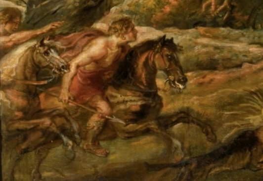 이 그림을 보면 한 가지 의문이 생긴다. 왜 멜리아기스는 말을 타고 있는데 아탈란테는 두 다리로 달리고 있을까. 빠른 속도로 폭주하는 멧돼지를 추격하려면 말이 유리할 텐데 말이다. 그 이유는 아탈란테의 특기가 바로 ‘달리기’ 였기 때문이다. 멜리아기스나 테세우스 같은 쟁쟁한 영웅들이 말 위에 오르며 아탈란테에게 물었을 것이다. “빨리 말에 안 타고 뭐 해요?” 무릎과 발목을 돌리며 가볍게 준비운동을 하던 그녀는 쿨하게 대꾸했으리라. “그런 느려 터진 거, 답답해서 못 타요.” 어이없는 표정을 짓는 사람들을 뒤로하고 바람처럼 달려 나가며 활을 당기는 아탈란테를 상상해보라. 정말 멋지지 않은가!