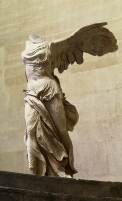 < 좌측부터. 서양미술의 시작, 사모트라케의 니케 / 이탈리아 르네상스의 위엄, 티치아노의 전원의 합주 / 19세기는 프랑스의 것, 들라크루아의 십자군의 콘스탄티노플 입성 >