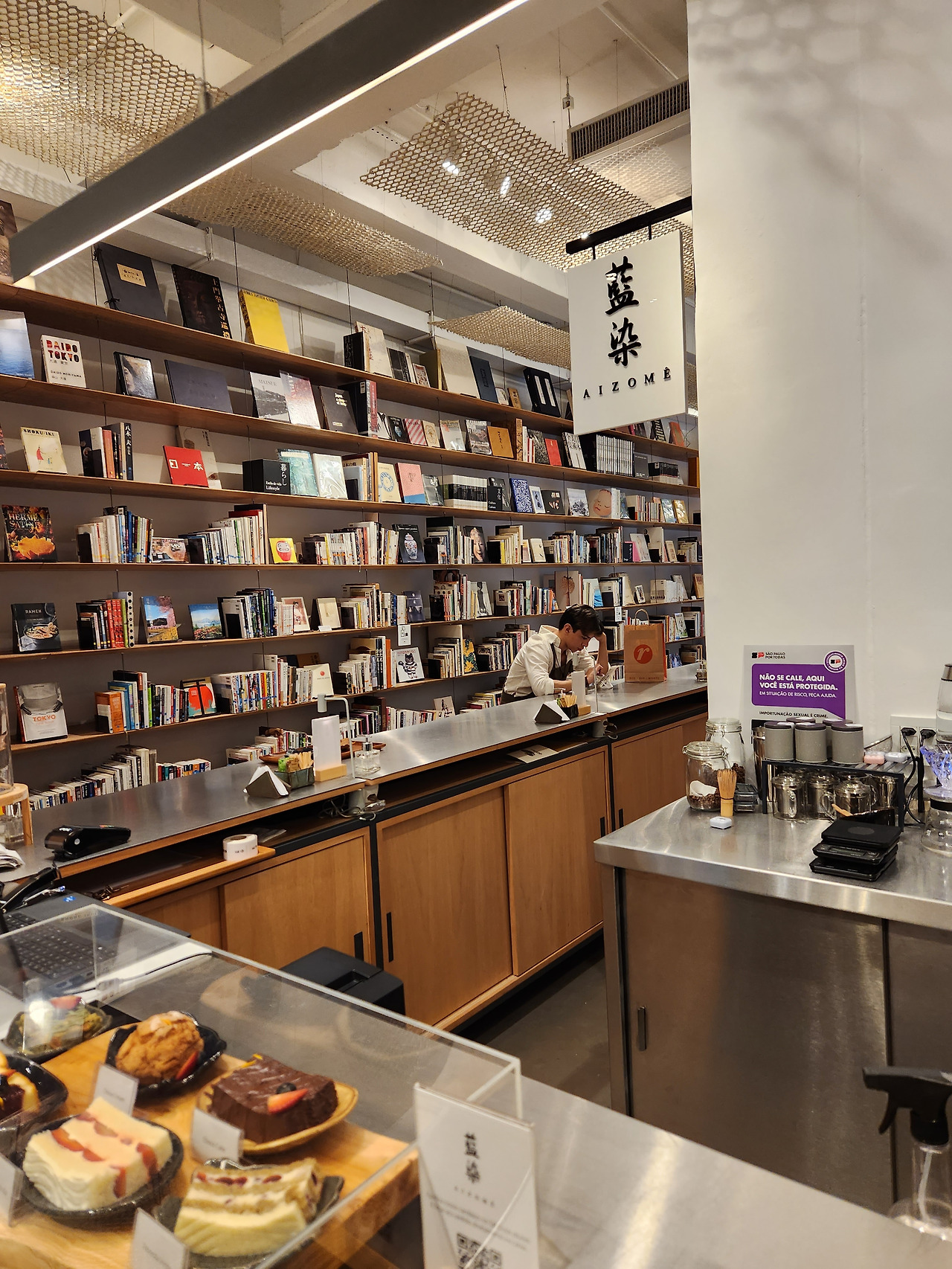 상파울루에서 제일 번화한 거리는 파울리스타 대로이다. 이 일대의 화려함과 번잡함은 강남 못 지 않다. 여행 첫 일정으로 파울리스타 대로에 있는 일본 문화원을 찾았다. 여러 흥미로운 전시를 무료로 즐길 수 있는 곳이다. 문화원 내에는 ‘아이조메’라고 하는 카페가 있다. 아이조메는 ‘쪽 염색’이라는 뜻이다. 카페는 별도 공간으로 분리되어 있지 않다. 전 석 카운터 석으로 이루어진 이 카페는 전시장과 서가, 즉 예술과 책 사이에 스윽 스며들어 있다. 카페 이름처럼.