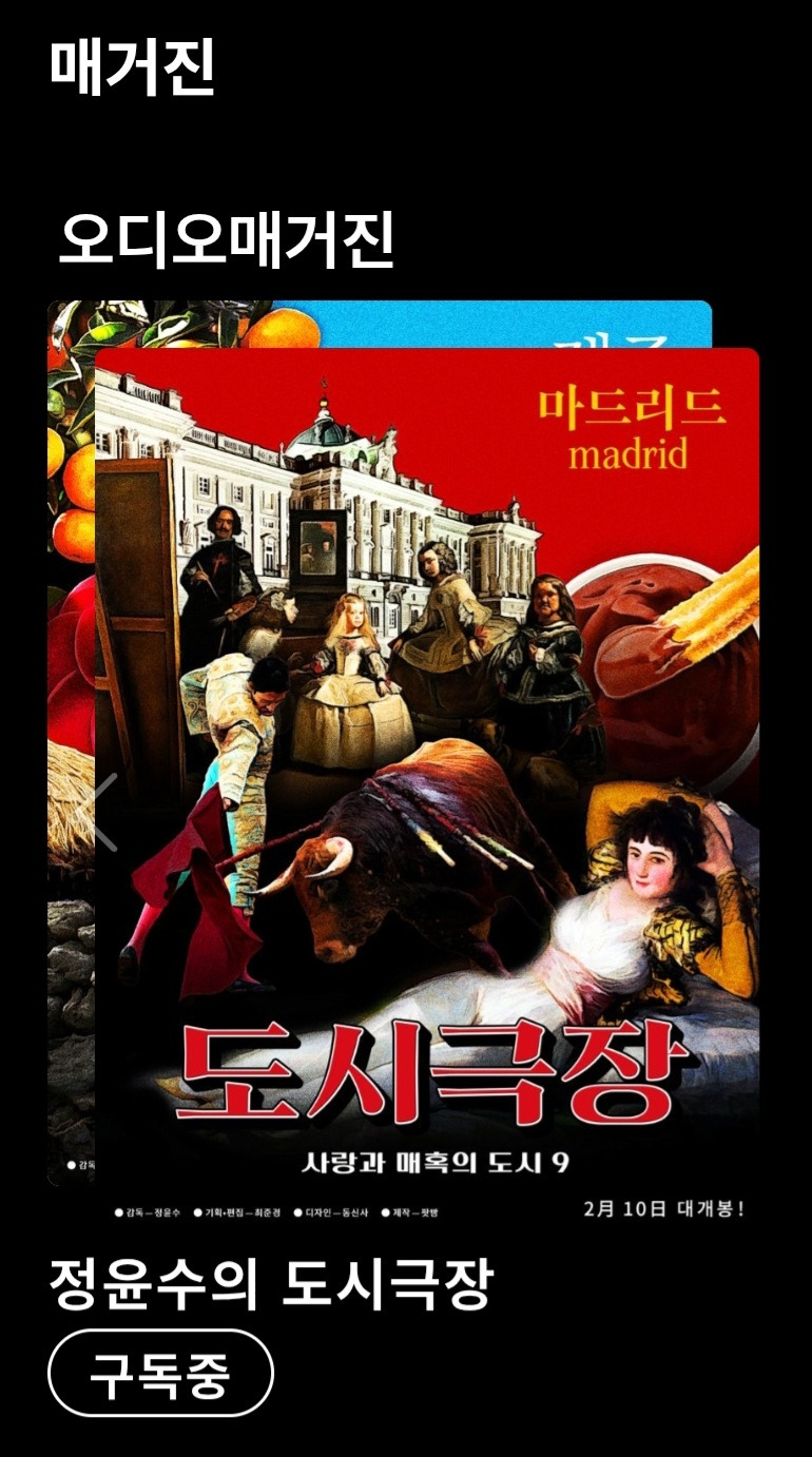 성공회대, 정윤수 교수님이 진행하는 '도시극장'에 출연하게 되었다. 도시극장은 팟빵에서 제공하는 팟캐스트 방송이다. 매거진 형태로 운영되는데 매달 한 개의 도시를 정해 역사, 예술, 음식 등 다양한 주제를 두고 심도 깊은 인터뷰를 진행한다. 2월의 도시는 바로 마드리드. 피디님이 본인이 출판하였던 '예술의 정원 마드리드 산책'이라는 책과 여기 브런치에 남긴 글들을 보시고 출연을 제의해 주셨다.