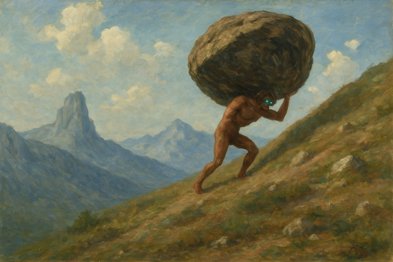 삶은 매 순간 내가 어떤 바위를 밀고 있는지를 돌아보는 과정이다. 그 바위가 나에게 어떤 의미인지 알고 있다면, 그 무게는 형벌이 아니라 존재의 증거가 된다.