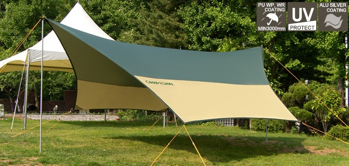 캠프타운의 타프는 가성비에서 완전 갑이다. 예산을 맞추기 위해서 선택한 케이스다. 콜맨과 깔맞춤이 되는 점에서 높은 점수를 땄다. 바람에 강한 헥사 타프의 특성을 잘 보여 준다. 투박한 철재 메인폴은 무겁기는 더럽게 무겁지만 강한 바람에도 엄청 탄탄하게 잘 버텨준다. 이제 은퇴를 해야 하는지 천이 늘어져서 아무리 잘 쳐도 쨍쨍하게 설치가 안된다.