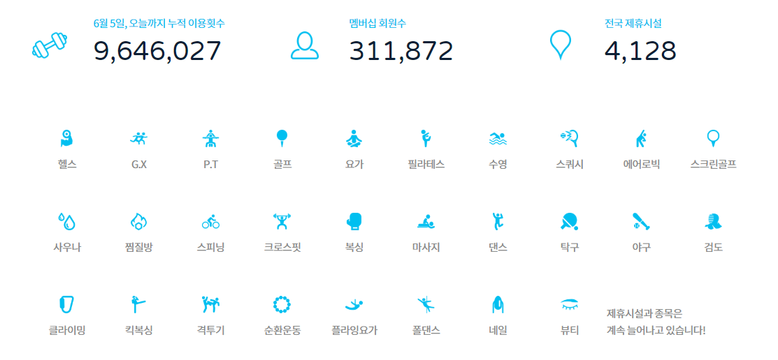 헬스장 중에는 포인트 멤버십을 활용한 제휴형 서비스가 있다. PASS를 구매하고 제휴되어 있는 제휴처에서 사용할 수 있는 모델이다. 딱 한 곳을 지정해서 가는 않아도 되는 장점이 있다. 단, 꾸준히 가는 경우는 비용이 더 비싸긴 하다. 그럼에도 불구하고 '운동을 못할' 핑곗꺼리를 없애주는 아주 훌륭한 방법이다.