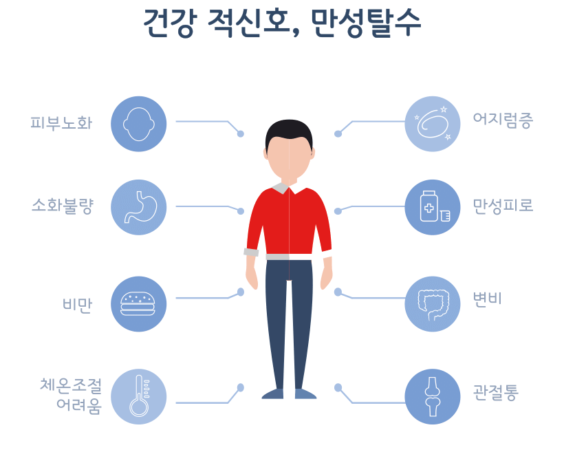 만성 탈수는 몸이 필요한 정량에서 2% 부족한 상태가 3개월 이상 지속되는 경우를 말한다. 의외로 많은 사람들이 물 마시는 습관이 없다. 또는 마시는 것 자체를 괴로워한다.