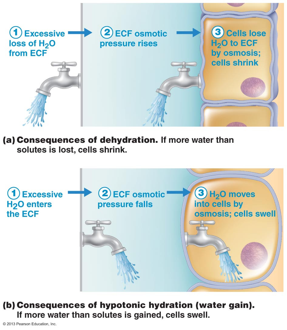 70kg의 남성은 42리터의 물로 구성된다. 42리터 중 28리터는 '세포 내 수분'으로 존재한다. 28리터 가운데 14리터는 '세포 외액'에, 3리터는 '혈장'으로, 1리터는 뇌척수액이나 안구액 같은 '세포 내액'으로, 10리터는 림프를 포함한 '간질액'으로 존재한다.