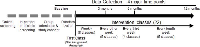 609명의 과체중 성인에게 실시한 이 실험의 '목적'은 '건강한 저지방(HLF) 식이 요법'과 '건강한 저탄수화물(HLC) 식이 요법'이 12 개월 후 체중 변화에 미치는 영향은 무엇이며, 유전자형이나 인슐린 분비와 관련이 있는지 알아보는 것이었다.