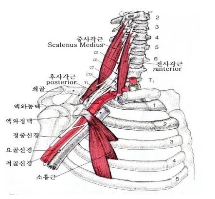 - 쇄골부터 목까지 연계된 통증