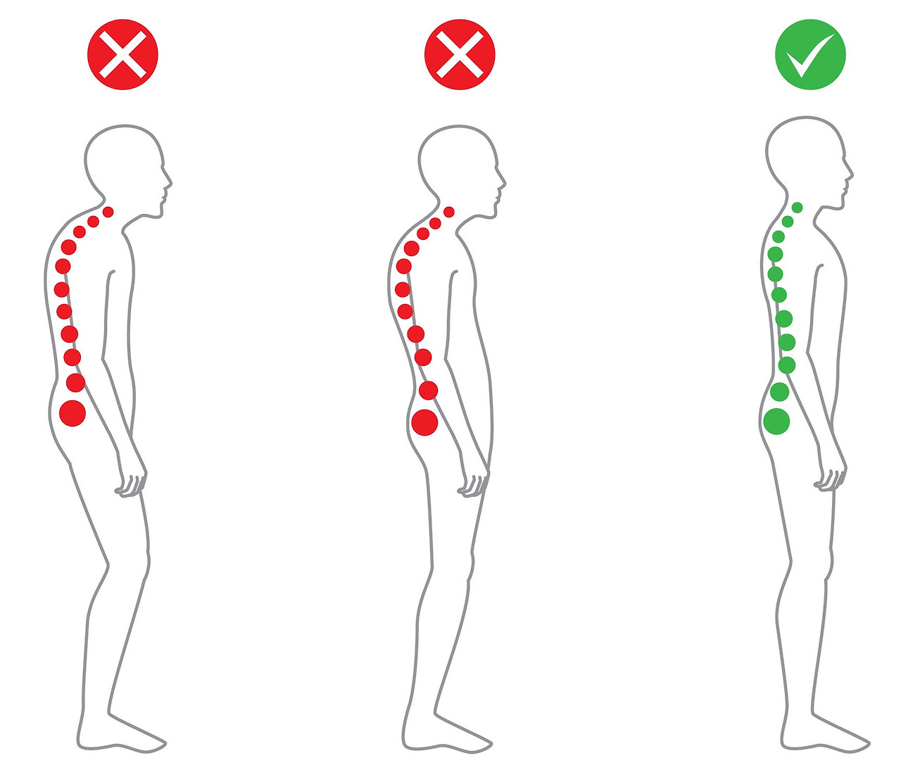 가장 좋은 자세의 느낌은 '열쇠고리 해골 자세'이다. 머리 끝에 줄이 달려 있다 생각하고 그 줄을 당겨 올린다고 생각해 보자. 목과 어깨는 최대한 멀어질 것이고, 가슴도 펴지고, 배도 플랫 해지고, 엉덩이와 다리도 자연스럽게 위치할 것이다. 느낌 오는가?