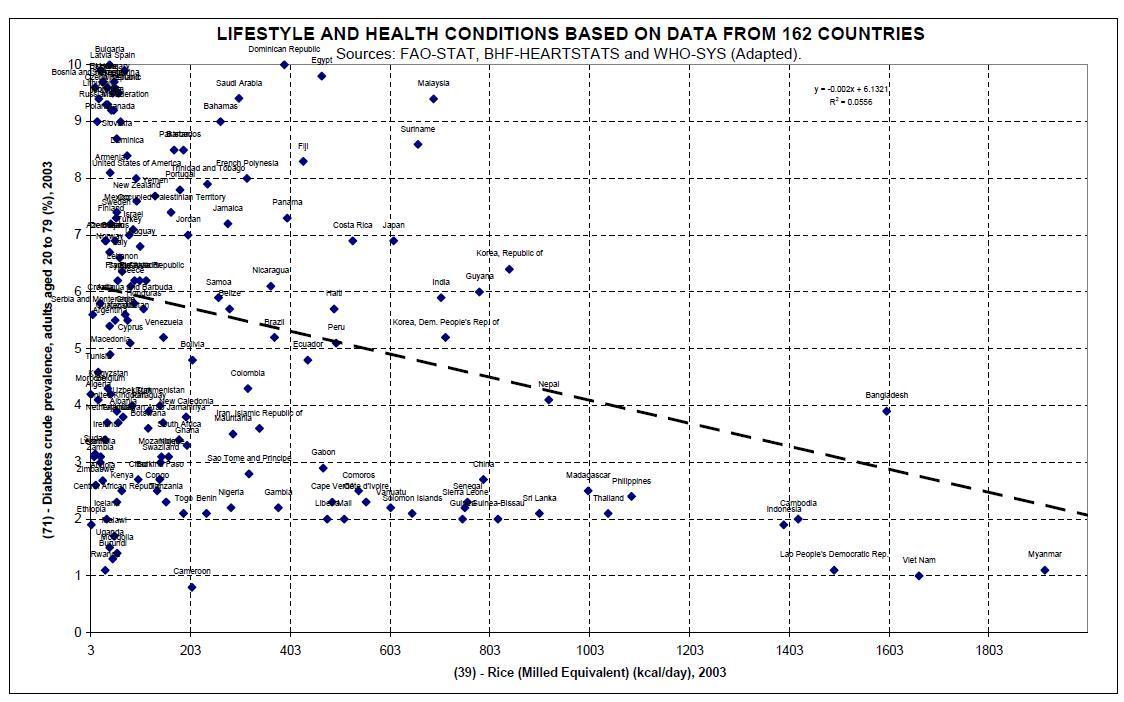 또 다른 과학자들은 이런 지적도 했다. 제2형 당뇨병의 발병과 직접적으로 연관 있는 식단은 없다. 따라서 흰 쌀을 많이 먹으면 제2형 당뇨병의 위험이 높아진다는 강력한 증거는 없다.