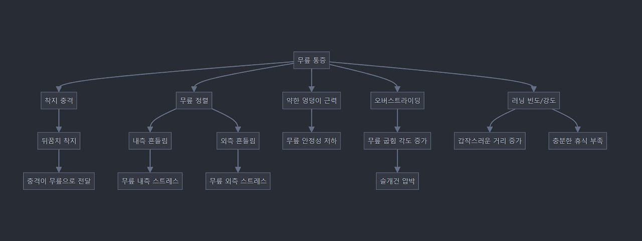 러닝을 권했을 때 가장 흔한 반응이 바로 '무릎이 안 좋다'이다. 러닝에서 가장 많은 사람이, 가장 흔하게 말하는 통증 부위가 바로 무릎이다. 나도 달리기의 원리를 제대로 모르고, 폼이 안정화되지도 않았을 때, 무리를 했더니 바로 아팠던 부위가 바로 무릎이었다.