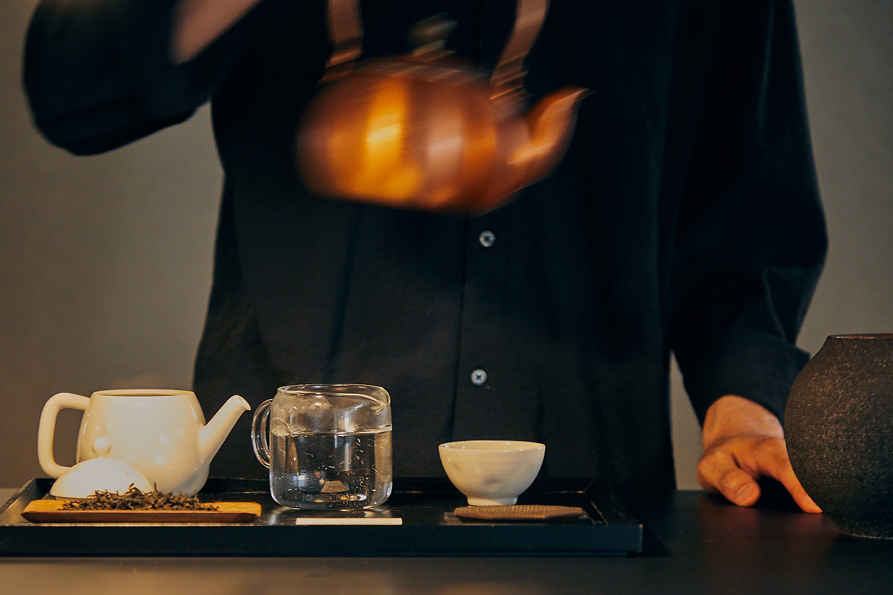 시간에 쫓기지 않고 여유롭게 차의 세계에 빠질 수 있도록 맥파이앤타이거 신사티룸은 한 타임(90분)에 최대 8명까지 예약제로 운영합니다. 하늘거리는 흰 천 사이로 들어서면 낮은 조도와 명상 음악이 마음의 긴장을 이완해줍니다. 일자로 된 테이블에 앉으면, 티 마스터가 바로 앞에서 친절한 설명과 함께 정성껏 차를 우려줍니다. 테이블 위 조명이 한 사람 한 사람의 찻자리를 비춰 다른 손님이 있어도 앞에 놓인 차와 나에게 오롯이 집중하게 되죠. 차 고유의 향, 차 따르는 소리, 다기의 부드러운 감촉을 느끼다 보면 오감이 살아나는 듯합니다. 잎차는 기본이고 아이스크림이나 알코올이 든 티 베리에이션, 다식까지 다양하게 즐기며 평온한 시간을 보내보세요.