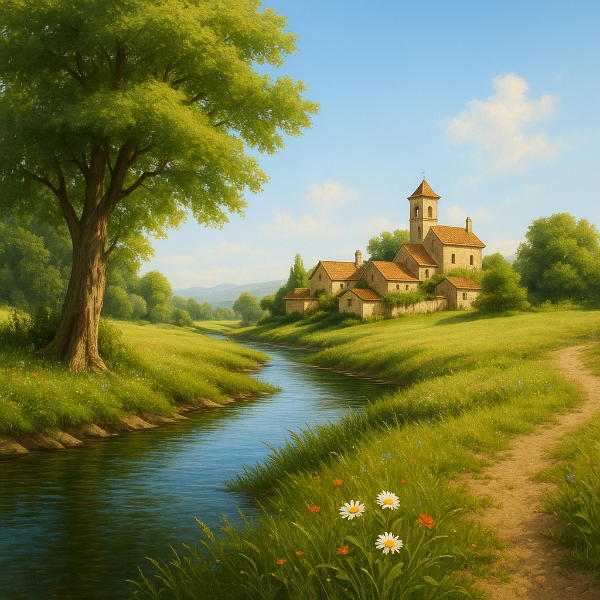 강 저편 들판에서는 염소 방울 소리가 나른하게 들려오고, 햇빛은 나뭇잎 사이로 반짝이며 떨어졌다. 종달새가 날아오르고, 부드러운 바람이 코끝을 간질이는, 싱그럽고 화창한 아침이었다. 집안일을 해 주는 그리제트 아줌마의 세라비를 찾는 벽력 같은 목소리가 강가에 메아리치기 전까지는 그랬다.