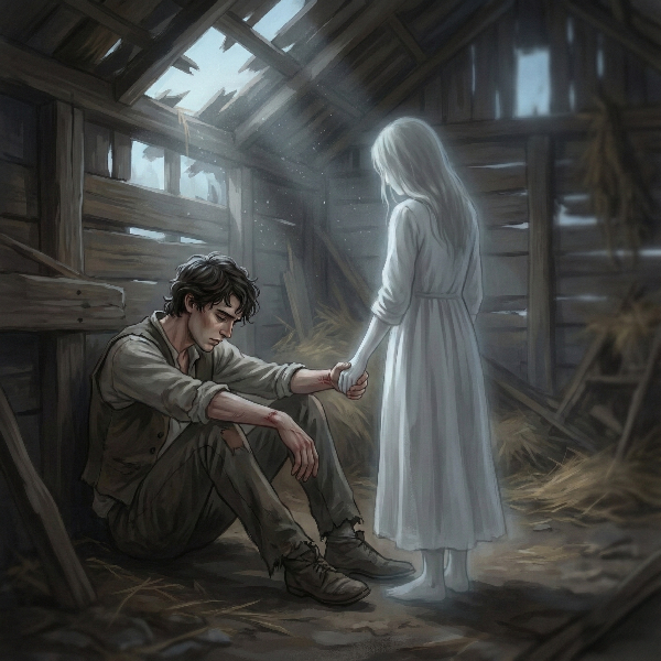 허름한 오두막에서 흰 옷을 입은 소녀가 몸을 숨겨달라고 찾아온 청년에게 소원을 묻는다는 것은 지나가던 개나 고양이가 안녕하시냐고 묻는 것만큼이나 이상한 일이었다. 그러나 이제 마악 떠오르기 시작한 햇빛이 무너진 지붕의 작은 틈새로 하나씩 스며들며 소녀가 입고 있는 몽롱한 하얀 긴 옷에 무늬를 만들고 있는 컴컴한 오두막 구석에서는 간혹 있을 수도 있는 일처럼 여겨졌다.