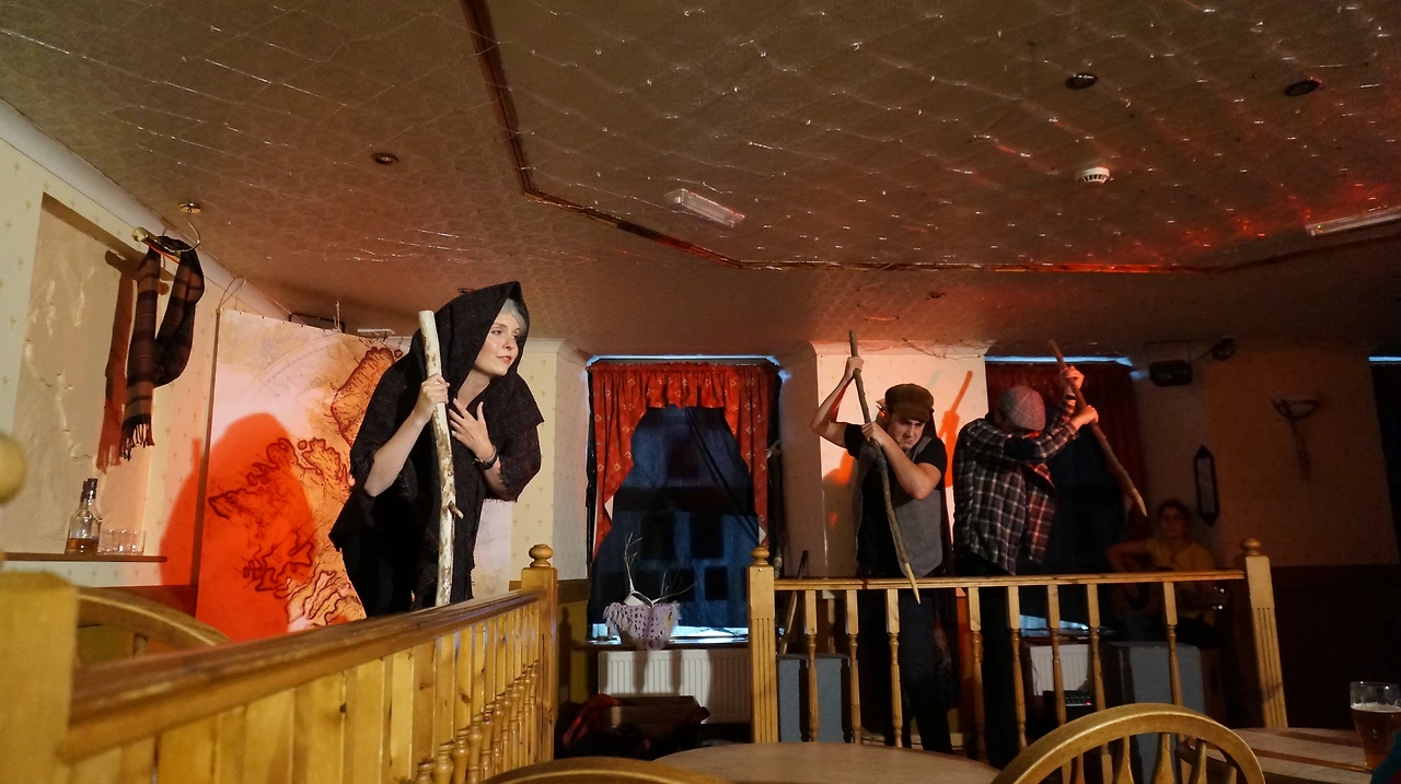 공연은 뮤지컬 형식으로 노래하다, 내레이션 하다, 연극하다, 다시 노래하다, 쉬는 시간 없이 쭉 흘러갔다. 웃긴 얘기, 슬픈 얘기, 오래된 얘기, 역사적인 얘기, 요정 얘기, 왕자 얘기, 영웅과 거인 얘기... 슬프려나 싶으면 다시 웃기고, 웃기려나 싶으면 다시 무거워지면서 사람들을 들어다 놨다 하며 순식간에 공연이 끝났다. 기타 치는 사람 하나, 연기하고 노래하는 사람 셋, 소품도 몇 개뿐, 무대장치도 없는데도 몰입력 끝내줬다. 아 이렇게 퀄리티 높은 공연을 단돈 8 파운드에 웰컴 드링크(로컬 위스키)까지 주면서 보여주다니 이건 거저다 거저.