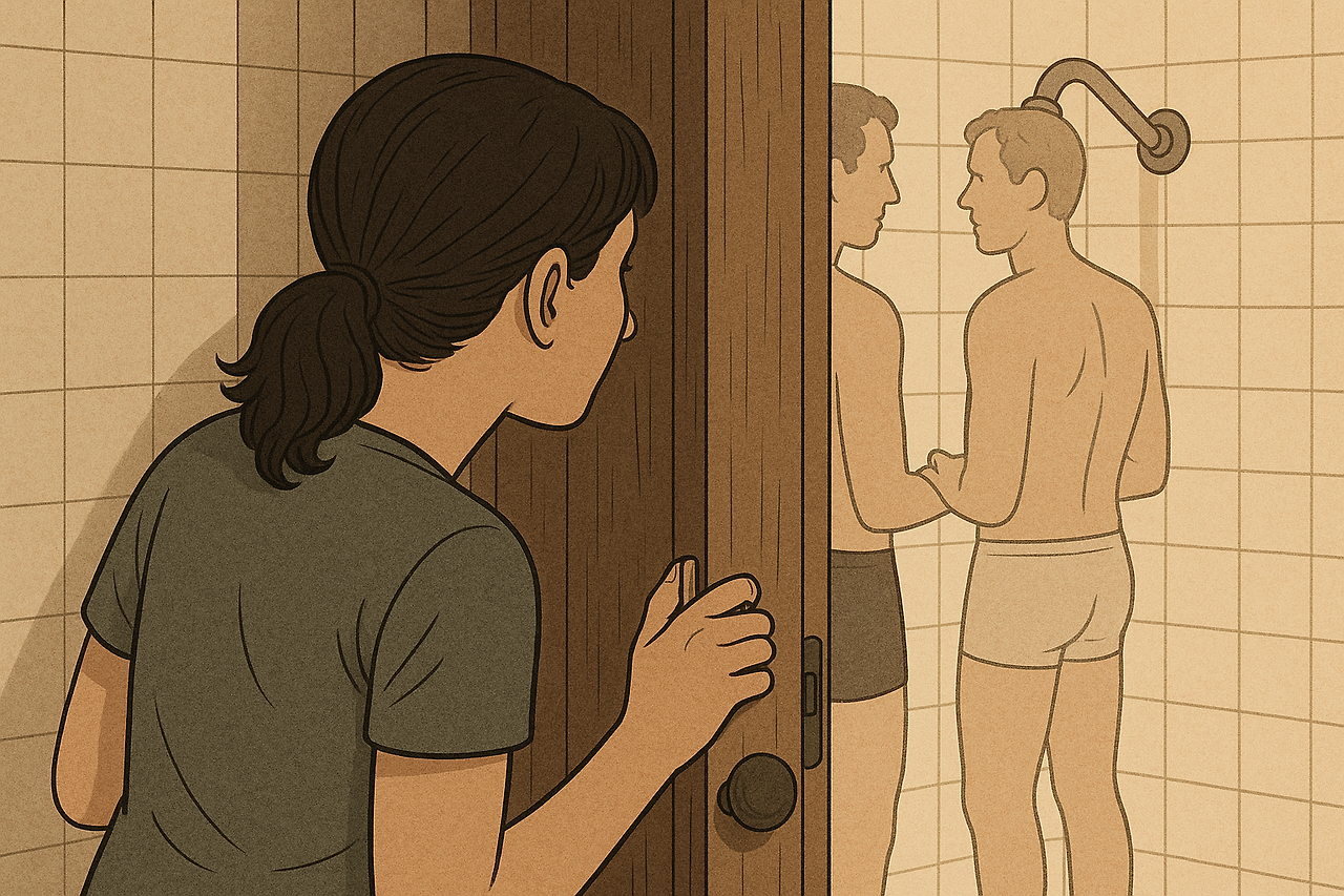 설마 아무리 독일이라도 그럴 리가. 여자 샤워실에 왜 남자가 있지?