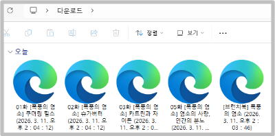 잠시 후 '다운로드' 폴더를 열어보면 이렇게 html 파일로 브런치북 한 회차당 한 페이지로 저장이 되어 있다.