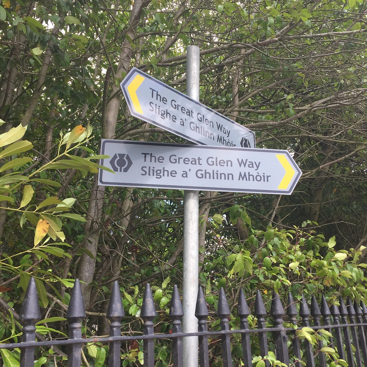운하 옆길을 지나, 네스 강가로 이어지는 길을 따라가다 보니 공사 구간이 나타났다. 어제 조지 심슨 할아버지가 공사구간이 있다고 뭐라뭐라 얘기하는 걸 뭔 말인지 못 알아듣고 그냥 오케이오케이 했는데 잘 들어둘 걸 그랬다. 공사 구간 옆에는 그레이트 글렌 웨이의 우회로를 가리키는 표지판이 있었다.