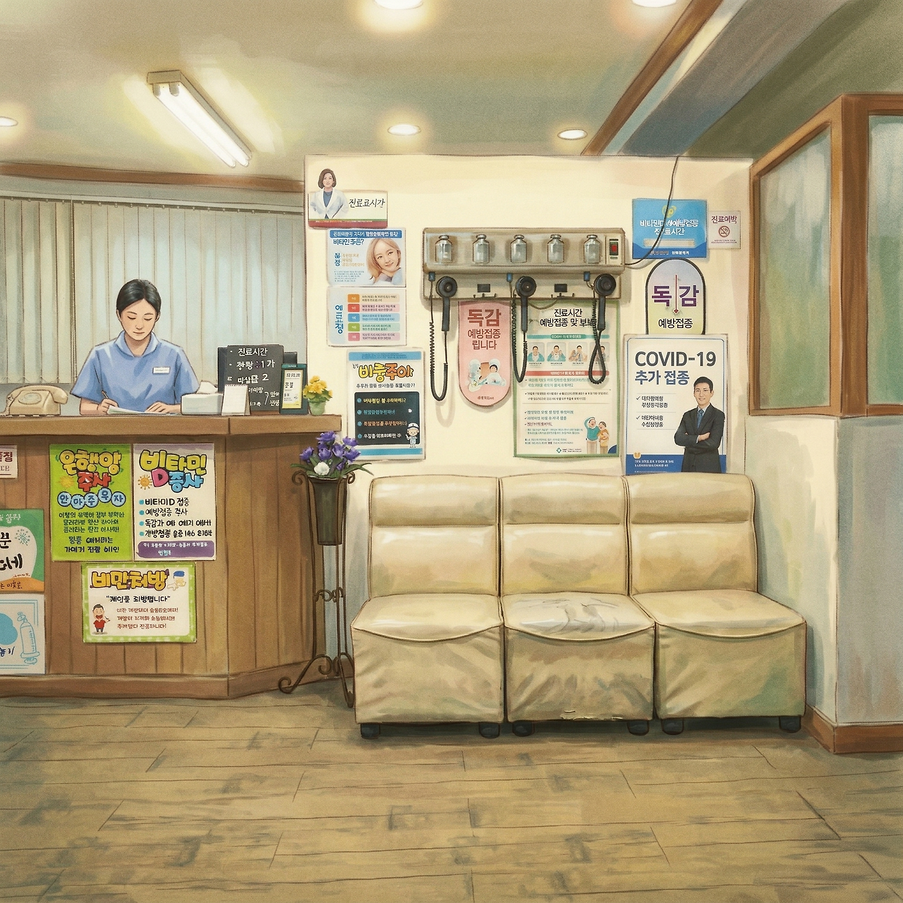 자주 오는 단골 환자인지, 의사와 환자의 아주 친근한 대화가 들리는 가운데 카운터의 간호사 이모(간호사님이라고 부르기에는 너무 이모 분위기다)는 구부정한 조그만 할머니의 접수를 받고 있었다. 접수를 받는 종이는 80년대에 대량으로 인쇄해서 아직도 쓰고 있나 싶을 정도로 오래된 명조체로 인쇄한 양식이다.