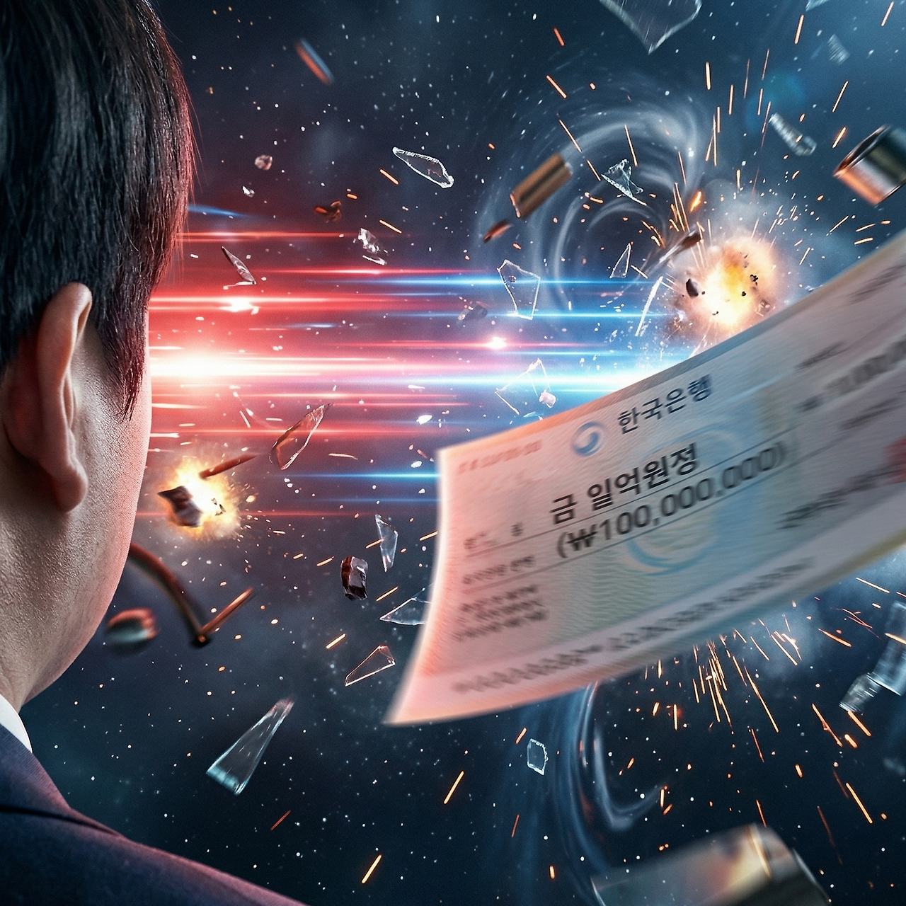 제길, 또 시작이다. 눈부신 금빛 선들이 하늘로 뛰어오르듯 솟구치고, 부서진 벽돌 조각들이 누군가의 손짓을 따라 어둠 속으로 쏟아져 내린다. 매서운 검날의 파편들이 쌩하니 날아와 영준의 볼을 스치고 사라진다. 아, 그것은 검이 아니었다. 유리보다 더 날카롭고 불꽃보다 더 뜨거운 그것은, 한 장 한 장마다 1억 원이라고 쓰여 있는 수표였다.