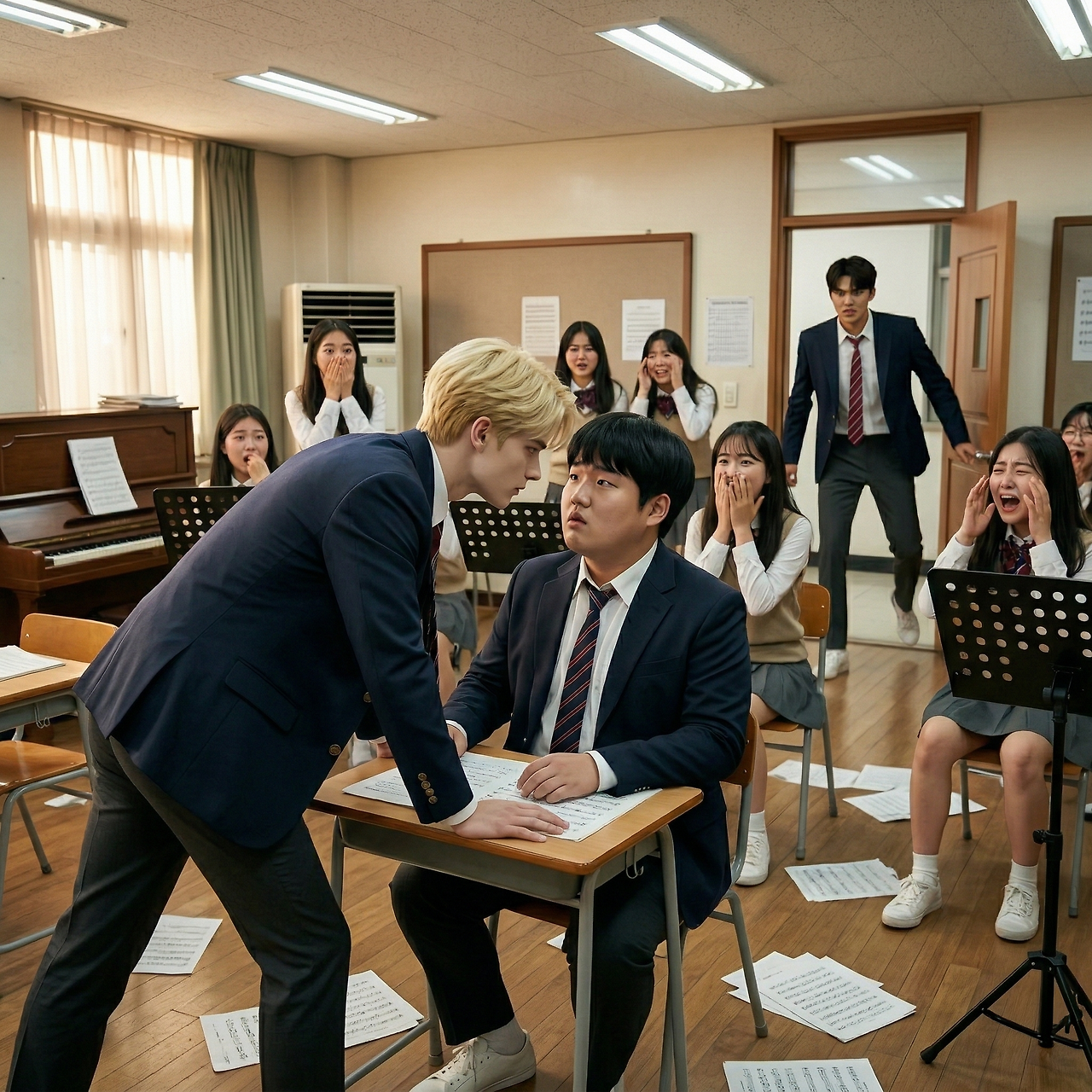 갑자기 음악실 뒷문을 박차고 누군가가 들어왔다. 김건우였다. 얘는 다른 반인데 여기서 말하는 걸 어떻게 다 듣고 있는지 미스테리다.