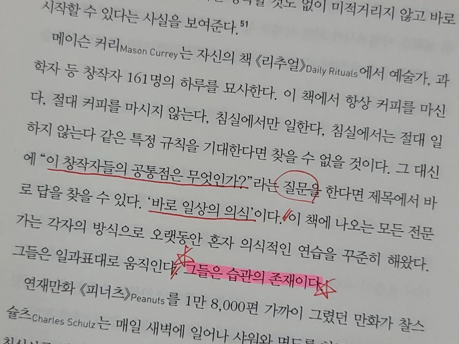 그 모든 행동이 해야 할 일이 아니라 하지 않으면 어색한 일이 되는 순간, 우리는 비로소 습관의 힘을 체감한다.