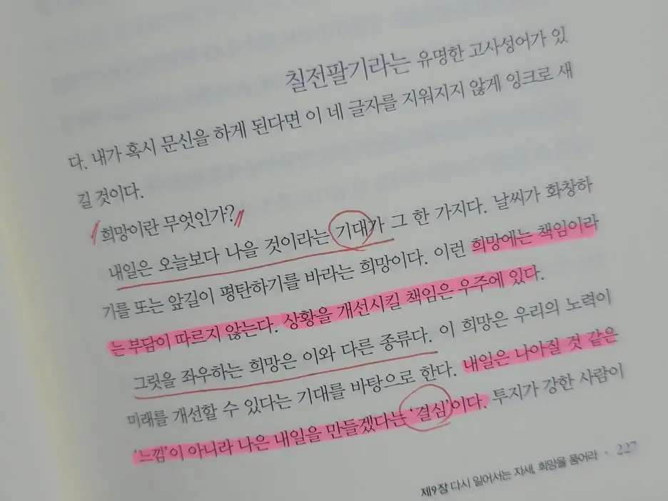 투지가 강한 사람들이 품은 희망은 행운과는 전혀 상관이 없으며 다시 일어서려는 자세와 밀접한 관련이 있다.” <그릿> 중에서 - 227page