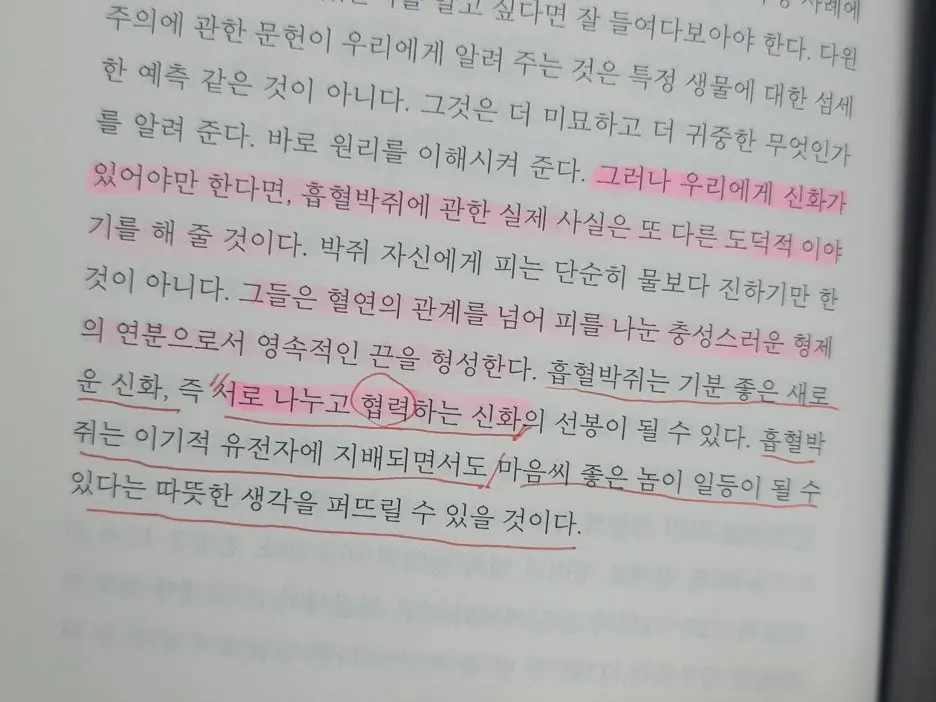 협력은 선택이 아니라 유전자의 생존기계로 살아가는 생명체에게는 생존의 언어라는 사실이 문장 사이에서 슬며시 드러났다.