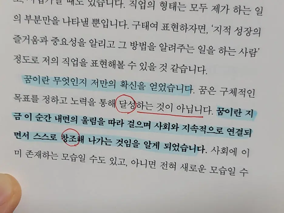 그러나 이 문장은 전혀 다른 이야기를 하고 있었다. 꿈은 도착지가 아니라 걷는 방식에 가깝다는 이야기였다. 창조는 바로 그 지점에서 시작된다.