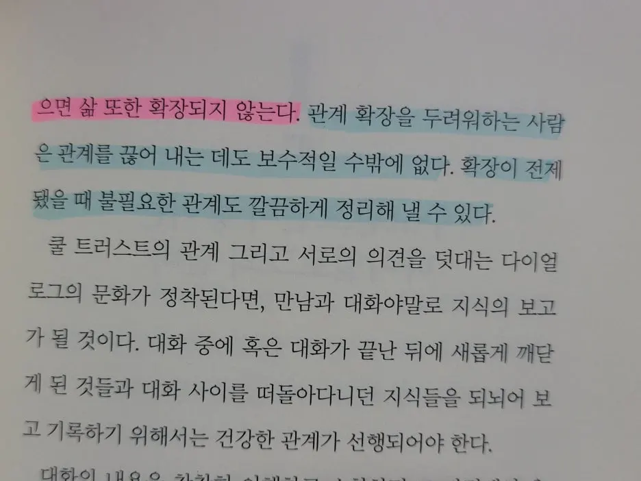 관계가 확장되지 않으면 삶도 확장되지 않는다는 말은 익숙하다. 하지만 확장이 전제될 때 불필요한 관계를 정리할 수 있다는 말은 쉽게 지나칠 수 없다.