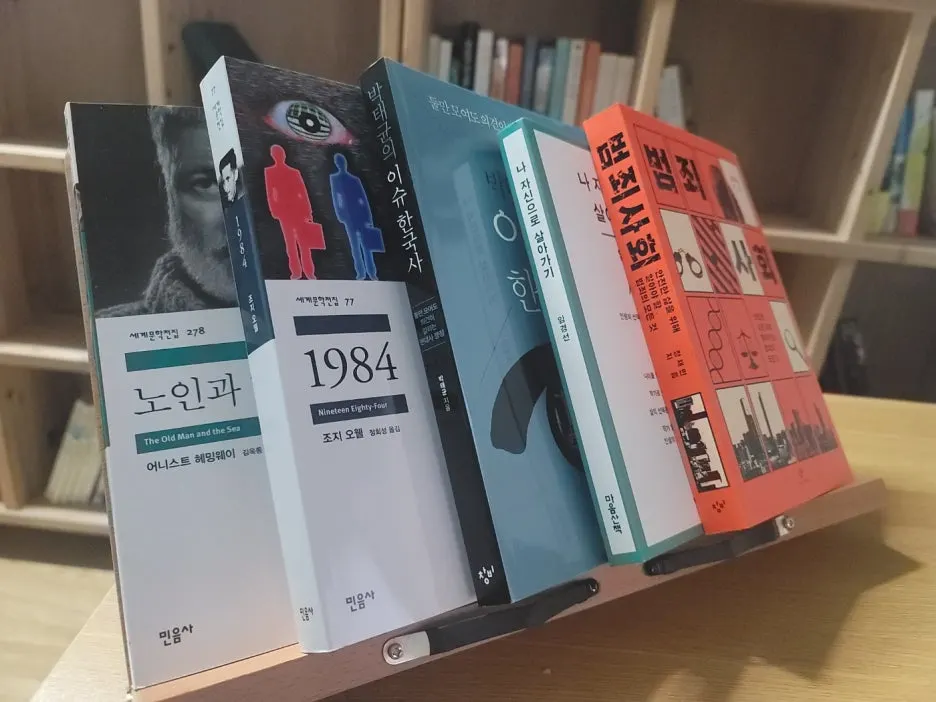 나는 책들을 조심스럽게 책꽂이에 올려두었다. 책장에 새로 자리 잡은 다섯 권의 책들이 마치 새로운 손님처럼 내게 인사를 건네는 것만 같았다.